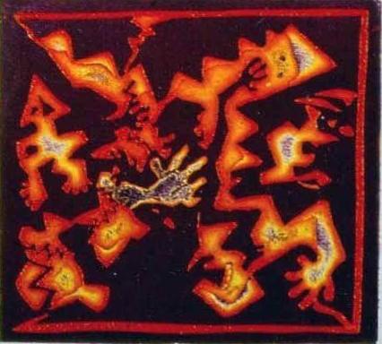 Zinc ElectroEtch 4" x 4", embossment, viscosity printed as cover, 1992 in "Year One", SUNY Stony Brook School of Medicine.